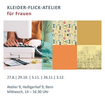 | Kleider-Flick-Atelier für Frauen 2025 Art der Veranstaltung: Allerlei Ort: Atelier 9, Holligerhof 9 | AllerleiNachhaltigkeit | Kirchgemeinde Frieden | |