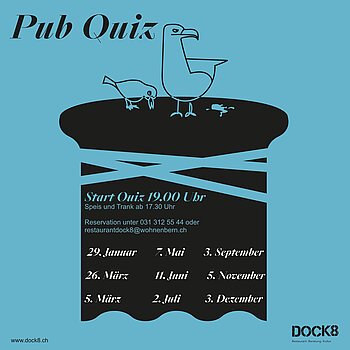 | Pub Quiz Art der Veranstaltung: Gesellschaft Ort: Restaurant DOCK8 | Gesellschaft | DOCK8 | |